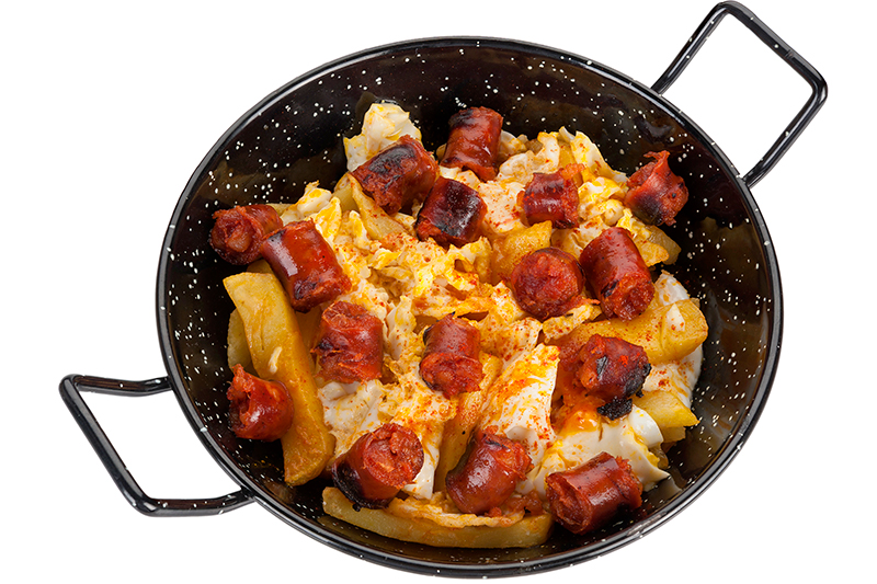 Pan artesano, cebolla crujiente, bacon bits, pepinillo agridulce, mezcla de quesos gratinados, salsa brava y mostaza americana. Salchicha a elegir entre Bratwurst y Frankfurt. Incluye patatas.