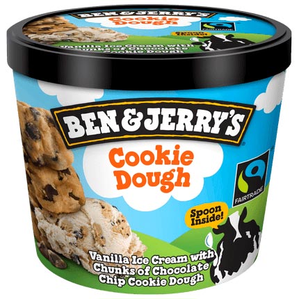 Helado crema vainilla con trozos de galleta con pepitas de chocolate y trocitos chocolateados.