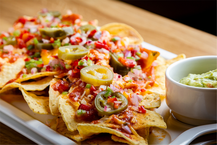 Con carne, guacamole, jalapeños, pico de gallo, salsa brava y queso fundido.