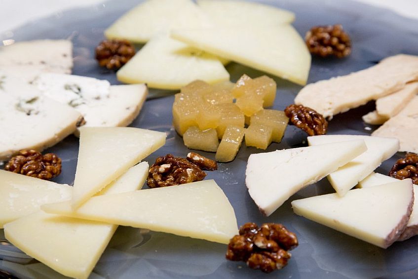 TABLA DE QUESOS CON MERMELADA DE TOMATE Y MEMBRILLO