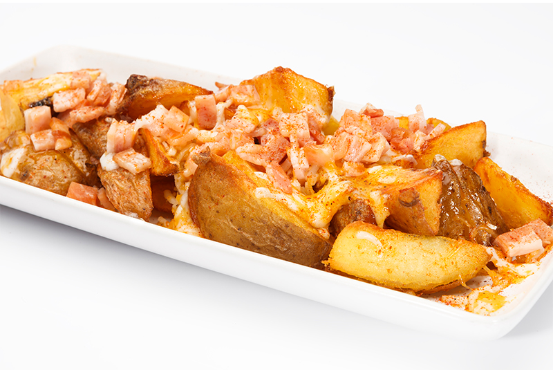 Con bacon crujiente, ranchera, queso fundido y un toque de pimentón de La Vera.